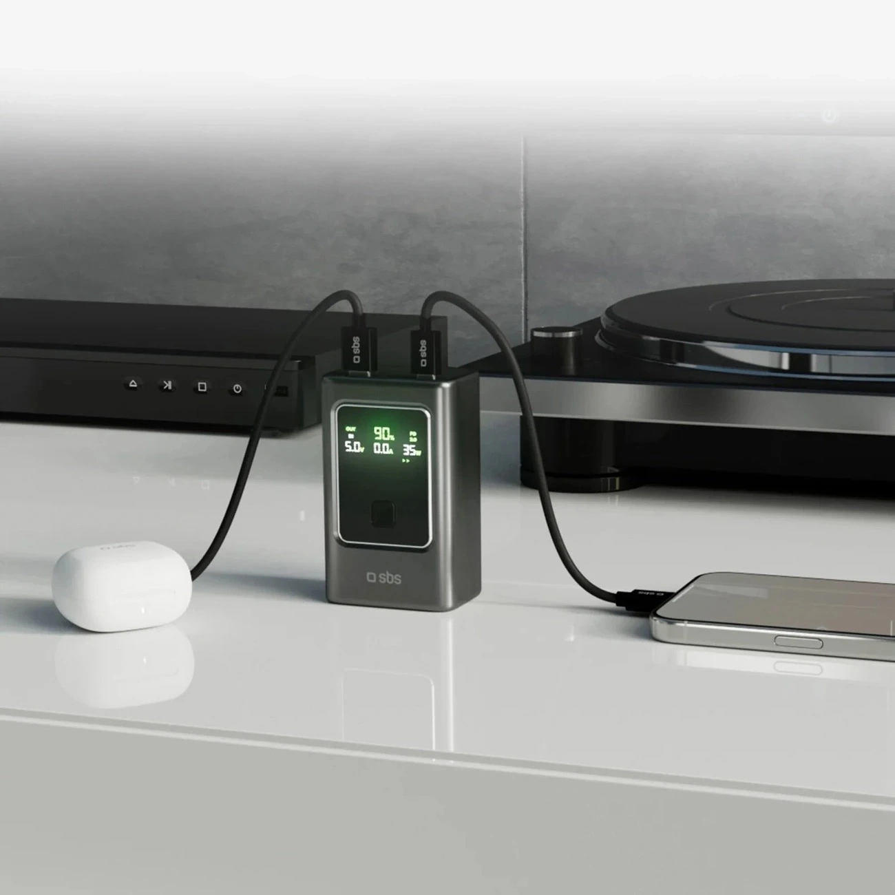 • Powerbank SBS 10000mAh z szybkim ładowaniem PD 35W i ekranem LCD. Zasili telefon, tablet i laptop, ma 2 porty (USB-A i USB-C), kompaktową aluminiową obudowę i nowoczesny design. Gotowy na każdą podróż i wyzwanie.